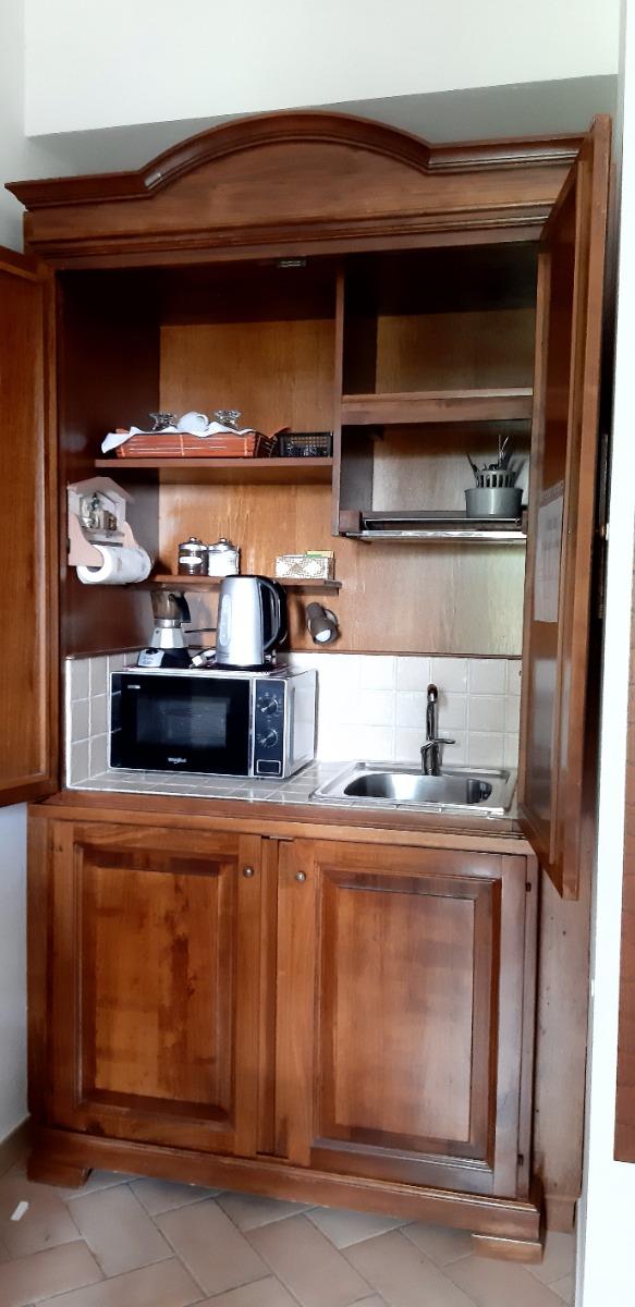 The double room with a double bed has a bathroom and a private entrance. There is a wardrobe/kitchenette where you can prepare tea and coffee and a fridge-freezer. Hairdryers and complete linens for the bathroom, bedroom, and kitchen are also available.