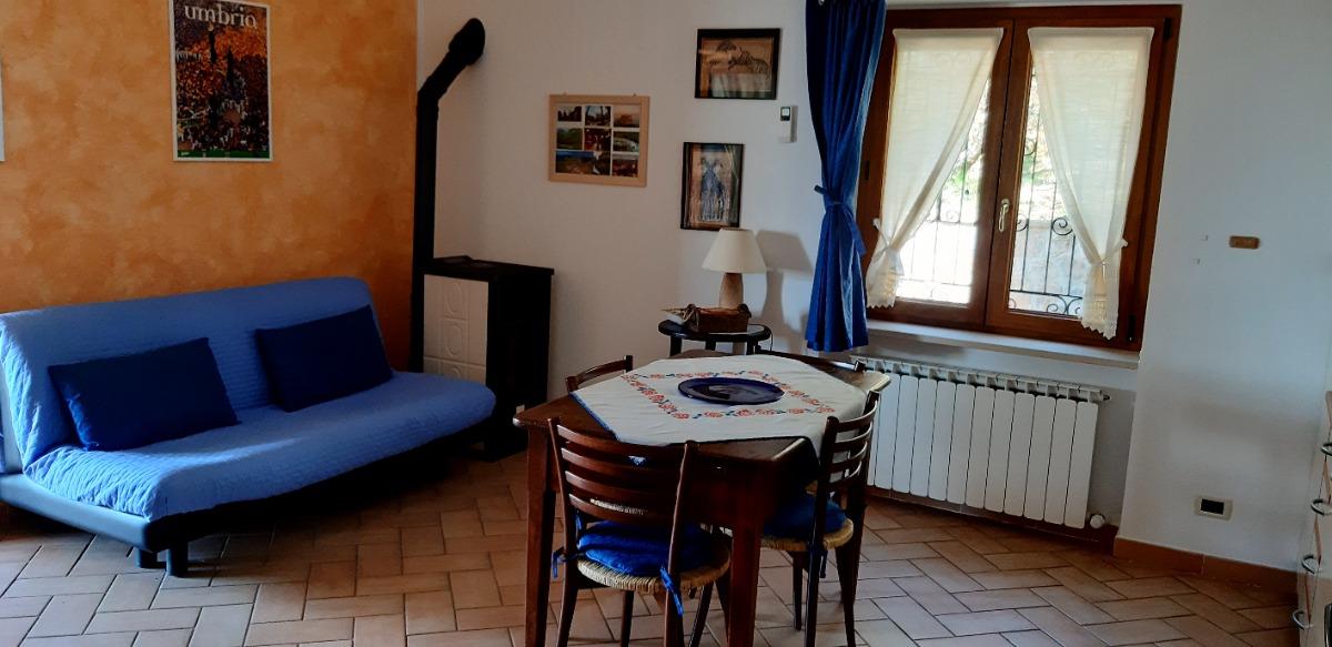 Our Bed & Breakfast is located approximately 5 km from the historic centre of Perugia, in a strategic position to reach all the art cities of Umbria within an hour, including Assisi, Spello, Todi, Orvieto, Spoleto and Gubbio. Situated in a peaceful area, our structure is ideal for couples and families looking for relaxation. Breakfasts, served under a porch with a large window, offer a view of the green hills. The guest apartment, with an independent entrance, is located on the ground floor and is spacious and comfortable, equipped with every comfort to ensure a pleasant stay. It consists of a living room-kitchen with a double sofa bed and a fully equipped kitchenette with a ventilated oven and a fridge-freezer, a triple/quadruple room with a double bed and a bunk bed, and a bathroom with a shower. Ironing board and iron, hairdryer, and complete linens for the bathroom and bedroom are also available. All windows are equipped with mosquito nets, and there is also a pellet stove in the living room and air conditioning in every room.